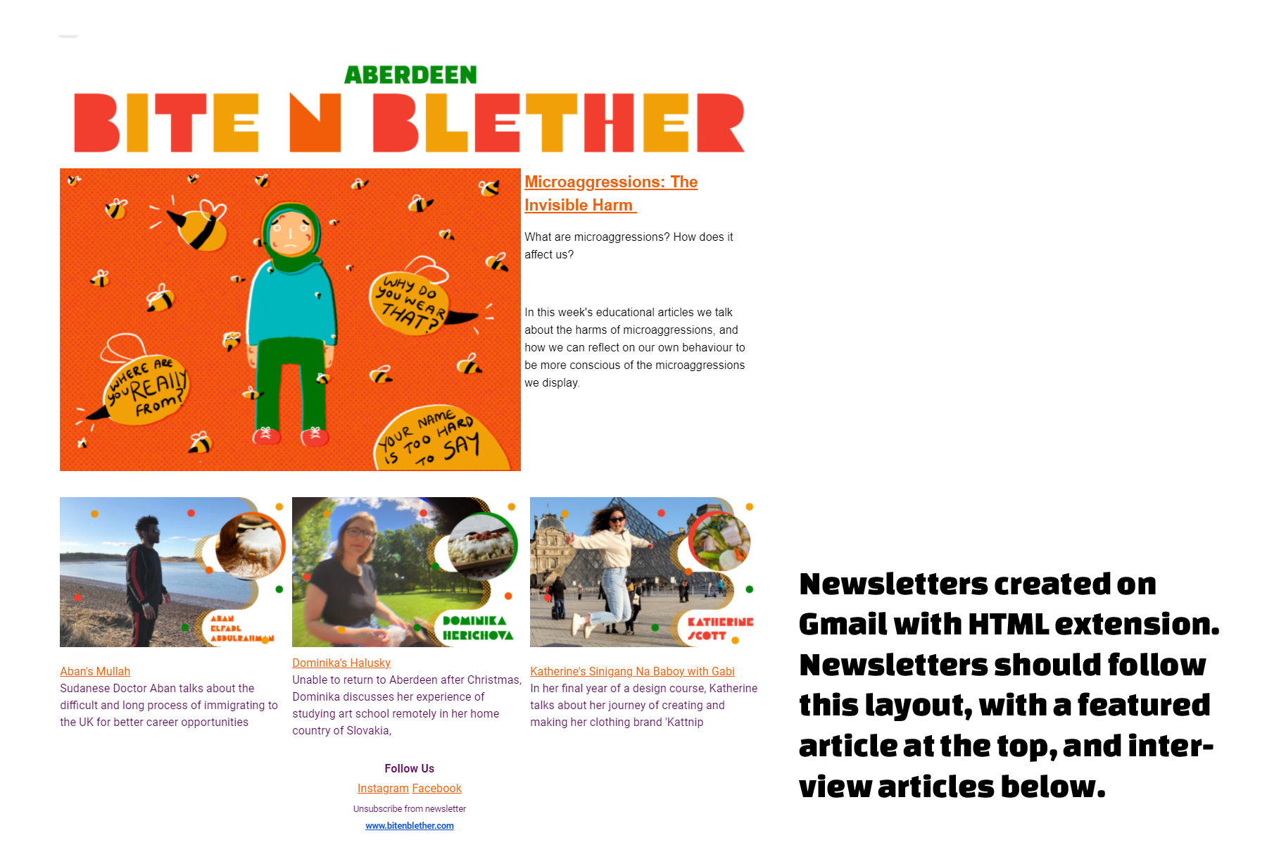 BIPOC and immigrants within the city are interviewed and asked to provide a recipe that's special to them. Educational posts are also uploaded. The goal is to be accessible for those who don't know much about these issues, and also to make BIPOC and immigrants feel validated within their own thoughts and feelings.