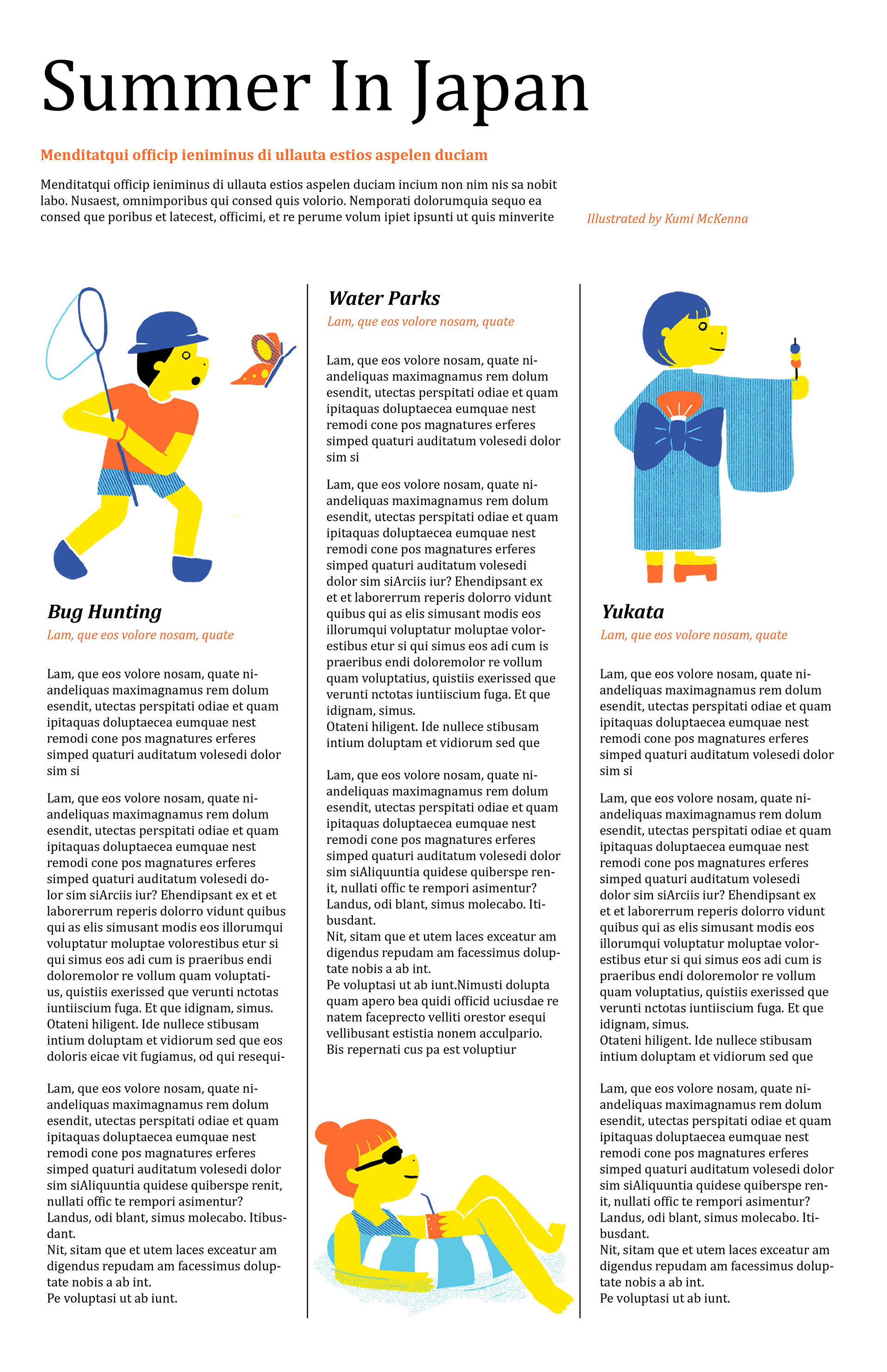 Editorial illustrations about summer activities in Japan